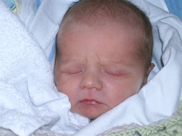 Er vild med dette, ret kiksede billede faktisk, af Liam omkring 1 uge gammel