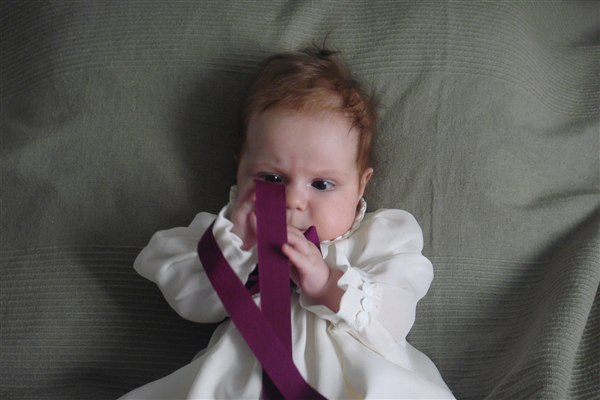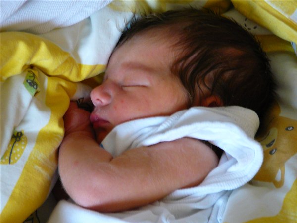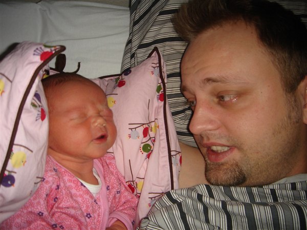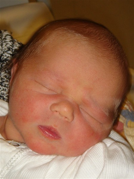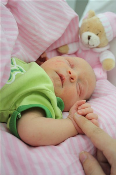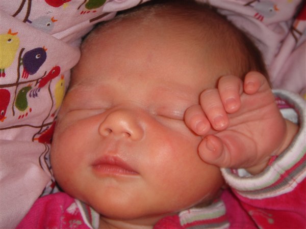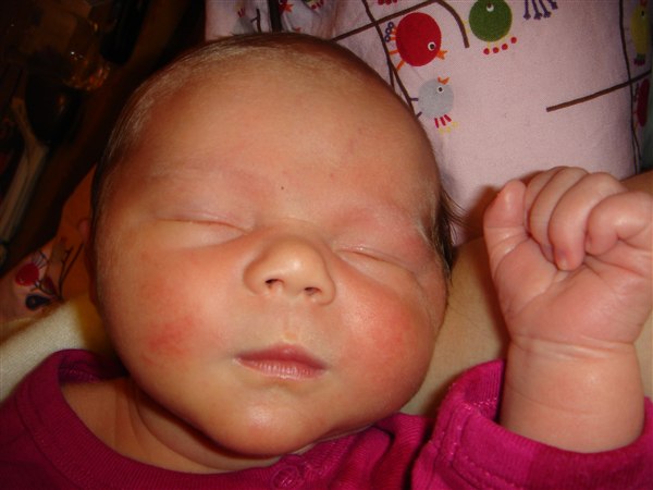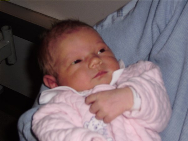 Billed 1 er hun 3 dage gammel, og første gang i sit eget tøj. Ikke hjem fra sygehus-tøjet..