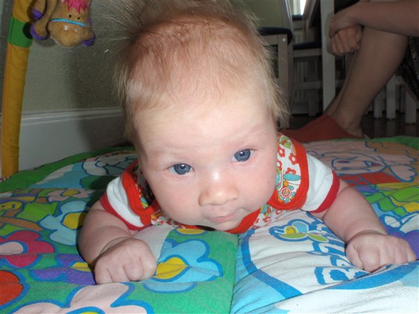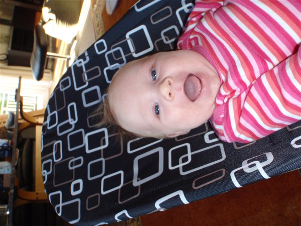 Det eneste problem er, at hun er så opmærksom, at det med at sove om dagen altså ikke er så sjovt - det kunne jo være, man gik glip af noget! Men når man har været vågen i 5 timer, er man altså ikke så sjov at være sammen med...