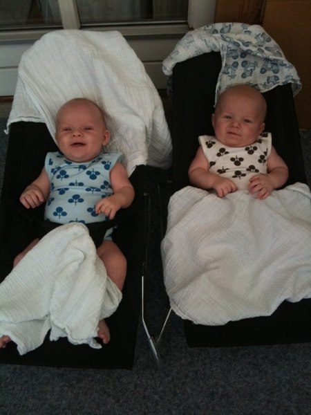 Malene84 skriver: Inspireret af den anden tråd der er igang, som er super hyggelig - så vil jeg gerne se hvordan jeres børn ser ud nu... Jeg lægger ud: Tristan først, Villads bagefter og til sidst et billede af begge to fra i onsdags - 12 uger gamle, str. 68 og 7 kilo hver SHIIIIT