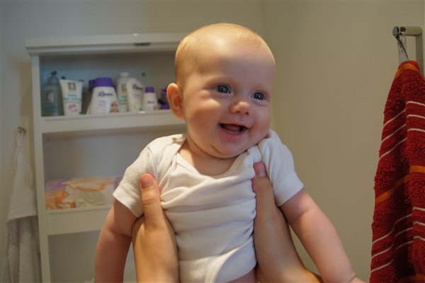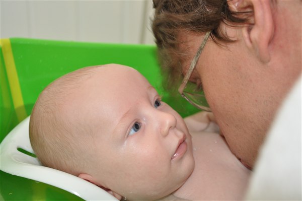 Inspireret af den anden tråd der er igang, som er super hyggelig - så vil jeg gerne se hvordan jeres børn ser ud nu... Jeg lægger ud: Tristan først, Villads bagefter og til sidst et billede af begge to fra i onsdags - 12 uger gamle, str. 68 og 7 kilo hver