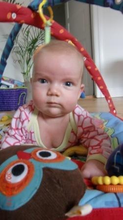 Der er sket SÅ meget. Hun bliver bare kønnere og kønnere for hver dag. Fik et helt chok, da jeg så hende der på legetæppet. Hun forandrer sig jo hele tiden. Hun er gået fra rynket spædbarn til lækker-lækker babypige.