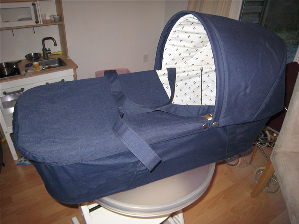 Denne gang er det en Odder lift i mørkeblå - den er i superfin stand, men jeg aner ikke, hvor gammel den er. Det var en, der fulgte med vores altanvogn, men den har vuggestuen købt - og de havde jo ikke just brug for en lift
