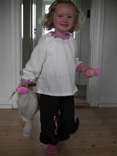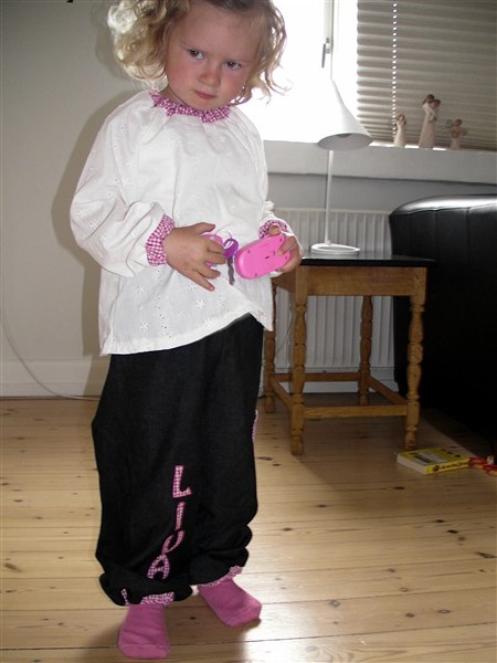 Her er lidt billeder.... forøvrigt mente pædagogerne at alle nye børn burde have sådan nogle navnebukser på den første dag