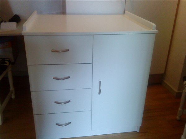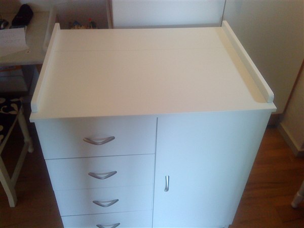 Rigtig flot og velholdt puslekommode med ét skab og 4 skuffer. Kan også bruges som almindelig kommode.