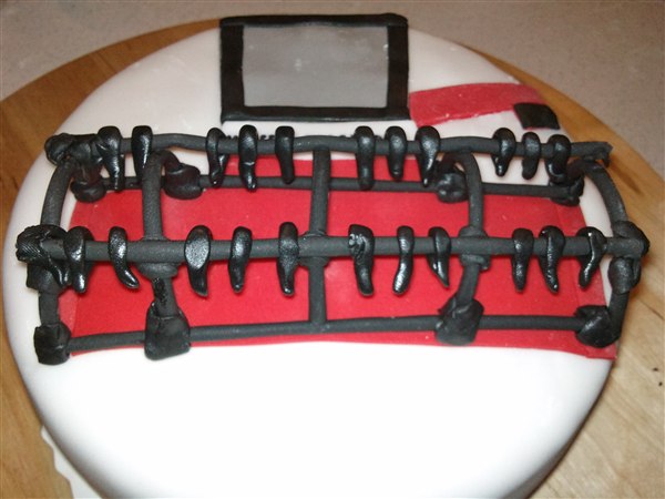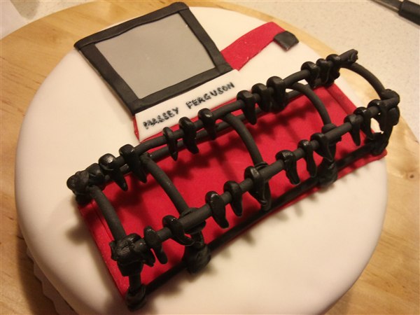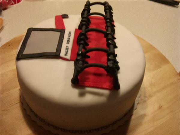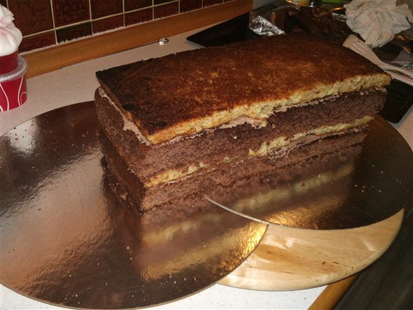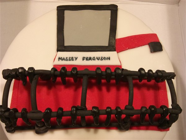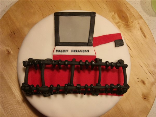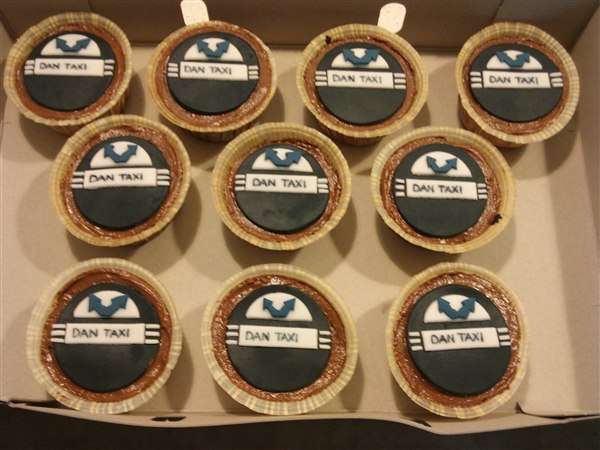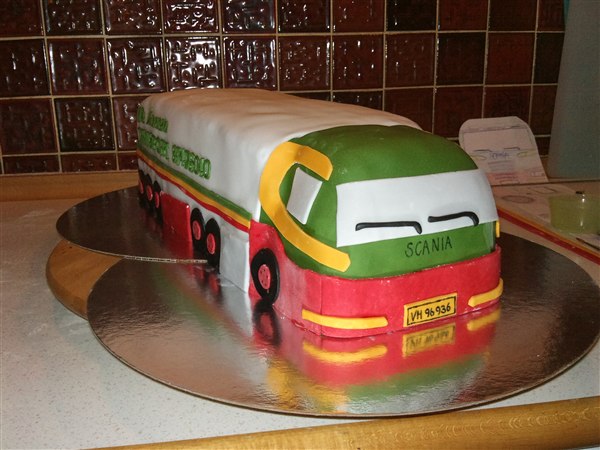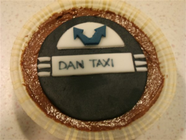 Så har kagebageriet stået lidt i det motoriserede område. Først nogle muffins med Dan Taxi logo, det er banamuffins med en chokoladecreme under logoet. Så en mejetærskerkage, den skulle være simpel, men når nu jeg godt kan lide at lege med det, så skal det ikke være helt simpelt.... Så drømmekagebunde i lyse og mørke og en lys chokolade/nougat creme imellem lagene. Synes lige skæreboret skulle stikke op af kagen Så en Scania V8 i min fortolkning, den er lavet af chokoladekage og banankage stablet med nutellasmørcreme imellem lagene også pyntet. Har også lige sat et par billeder af min nye bagering