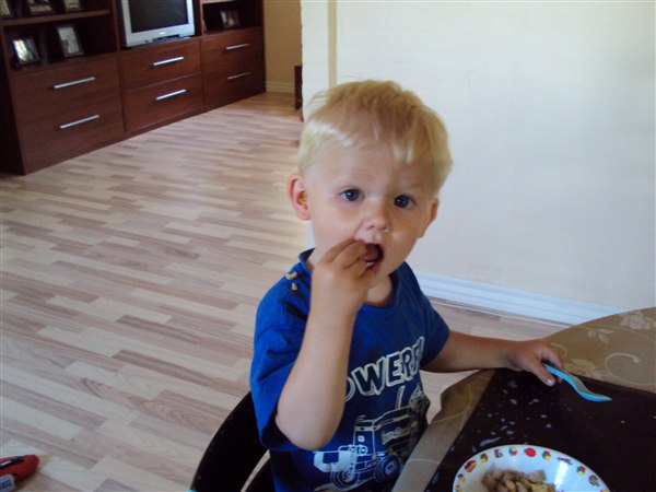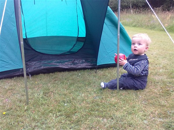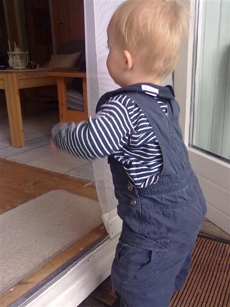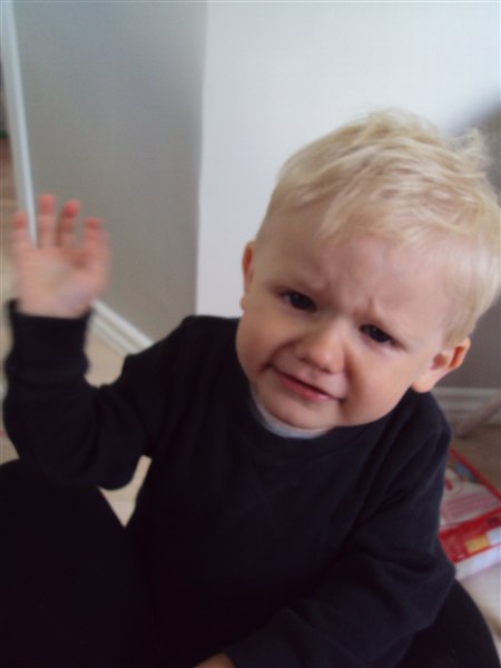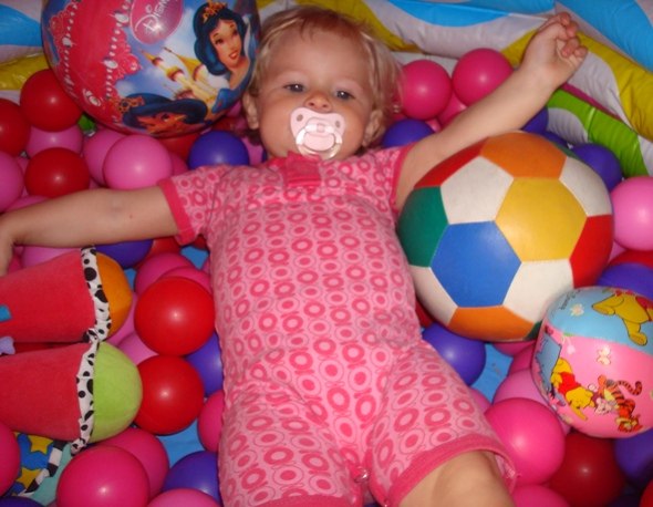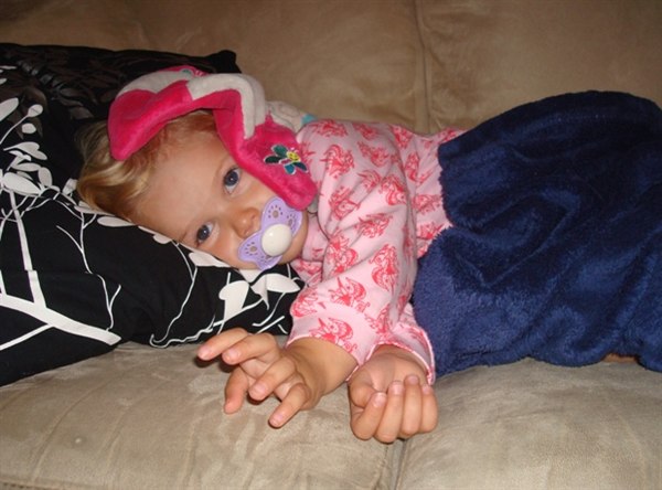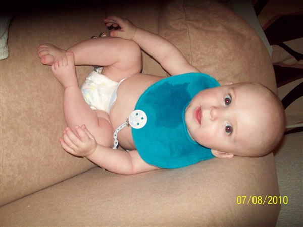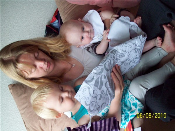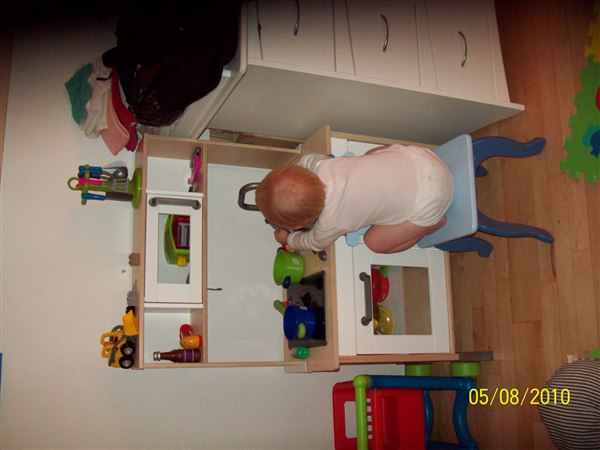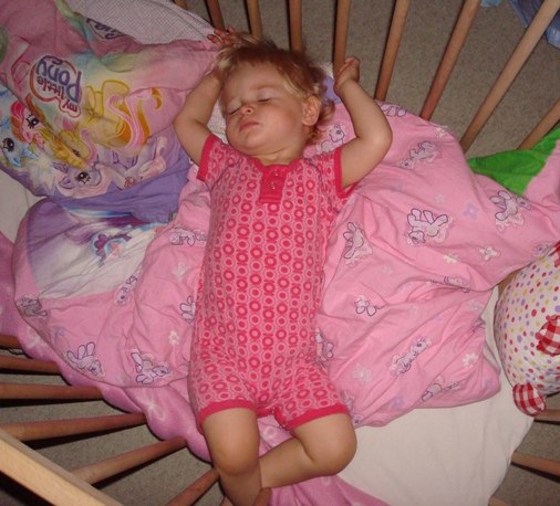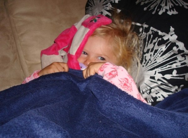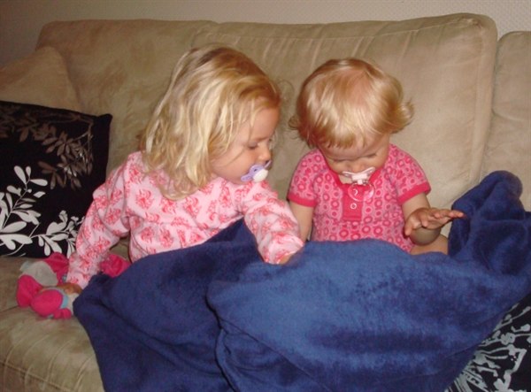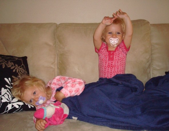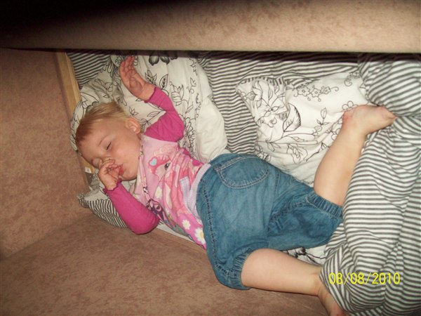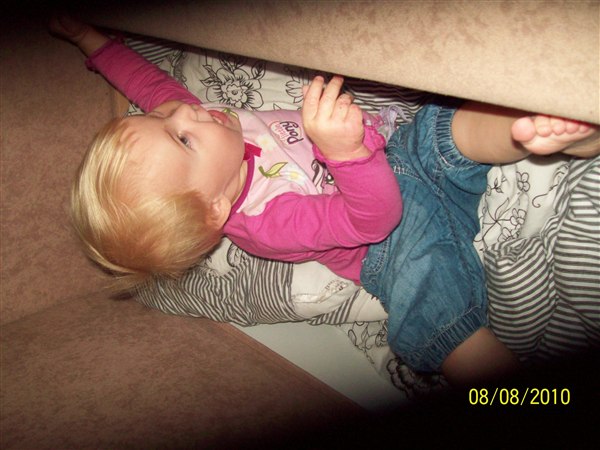 9- 10 Cassandra leger i vores sovesofa, der hvor dynerne skal ligge når det er en sofa