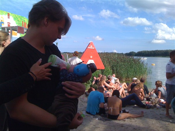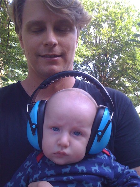 Men han var såå sød derude, og der kom en hel masse glade mennesker og sagde hej og snakkede med ham og os - det var bare superhyggeligt! Vi var så ikke alene om at have baby med, og der er generelt en rigtig god stemning omkring det når bare ungerne har hørebøffer på (!!!) - ellers bliver folk dødforargede...