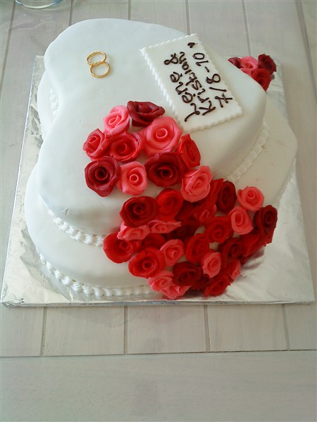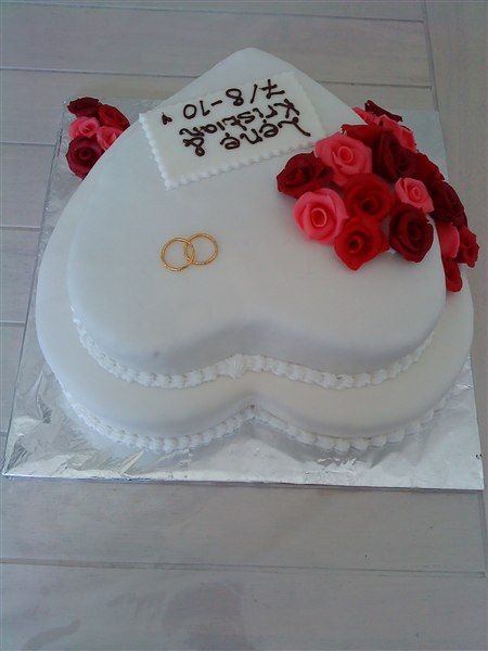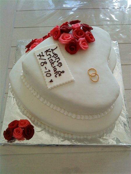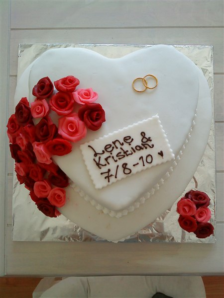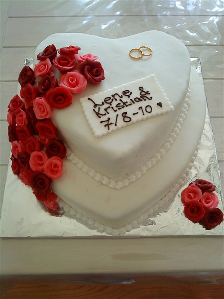 susser83 skriver: Så fik jeg lavet den endelige bryllupskage. Det er chokoladekage bunde med hindbærmousse og tobleronecreme.... Kom desværre til at sætte et par chokoladefingre...øv.