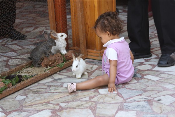og LATIFA elskede ham, når vi nærmede os hans salon, løb hun hen og bankede på hans dør, og når han kom, sprang hun nærmest op til ham..