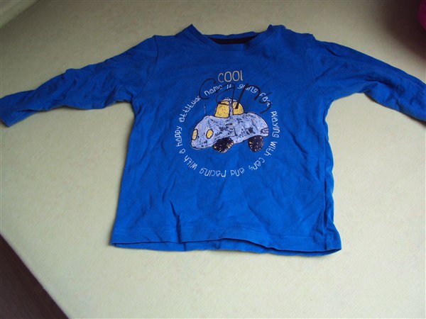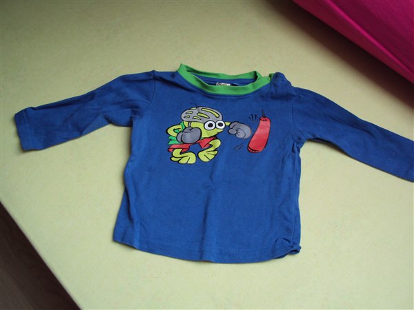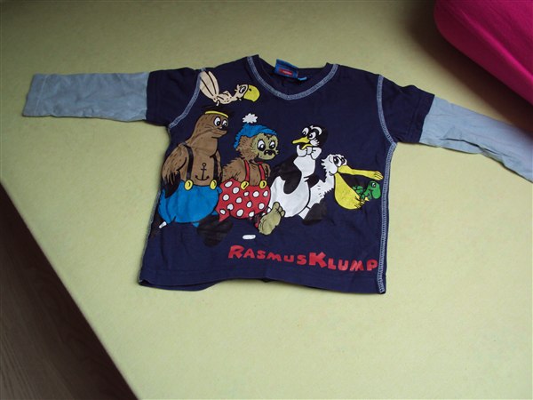 Rasmus klump bluse – Str.86 – 15 kr. Lidt slidt. Men stadigvæk i ok stand. Dog lidt revner i mærkerne. Men ses ikke når den er på!