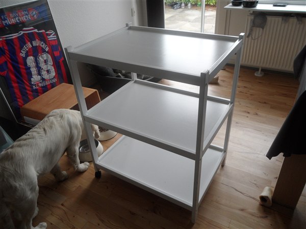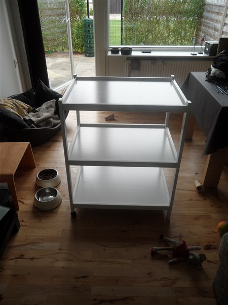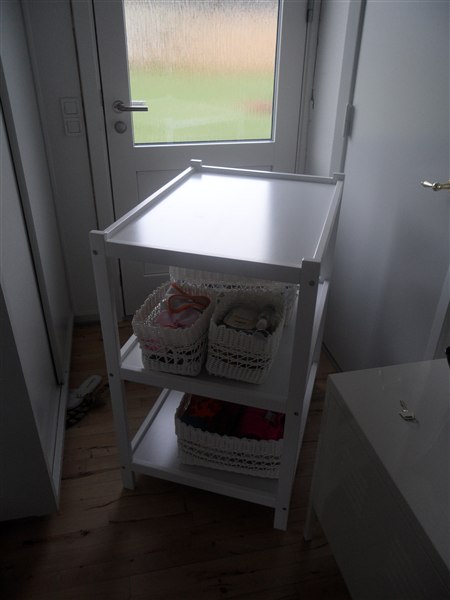 Som overskriften lyder - vi sælger en helt ubrugt kimi puslereol for 350,- (nypris 499,-) ..
