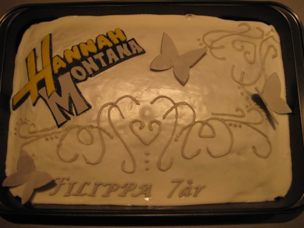 Kagen er bare ren chokoladekage uden fyld (datterens ønske) overtrukket med RI og pyntet med RI og MMF