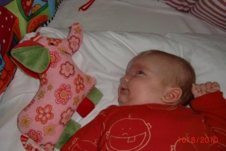 Jeg har de sidste tre dage så småt introduceret hende for hendes egen seng - det fungerer så småt om dagen, men har kun prøvet om aftenen igår og det var ingen succes.