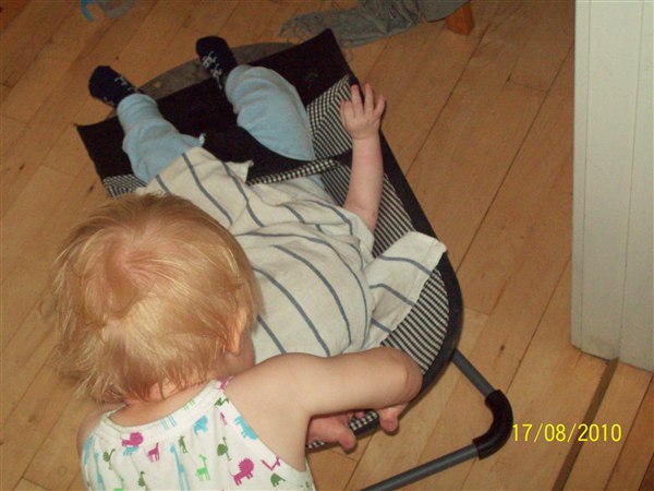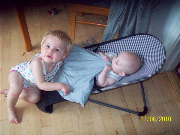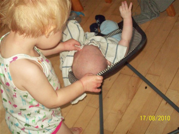 Når jeg kigger på Cassandra og ser hvor glad hun er for Julius. Hun vil gerne kysse, kramme og lege med ham. Her forleden tørrede hun ham om munden fordi han havde noget på hagen, hun var lidt hurtigere end mig. Ja hun ville også tørre mig om munden, da jeg havde lidt ved læben. Hun elsker bøger og lige nu mens jeg skriver dette, læser/viser hun en bog for Julius.