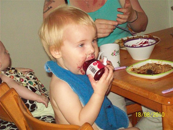 Billede 7: Cassandra vil gerne ha Julius' blåbærmos.