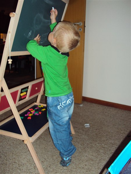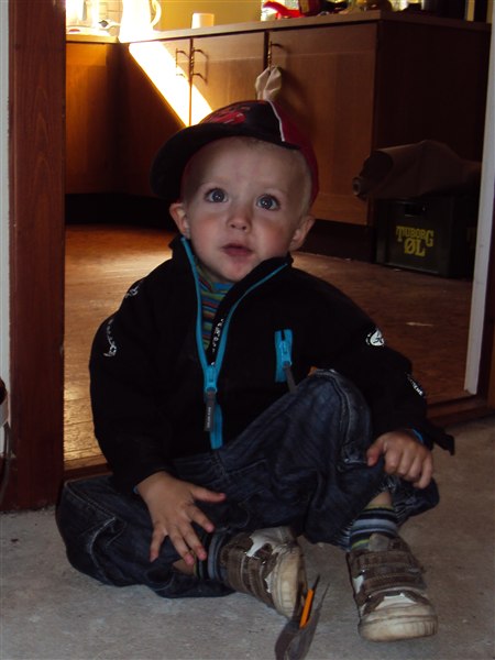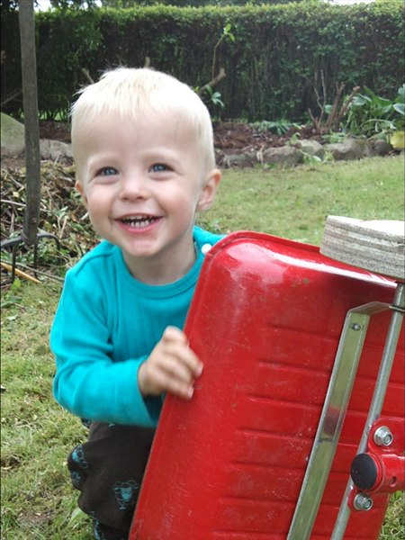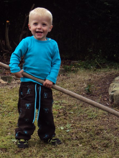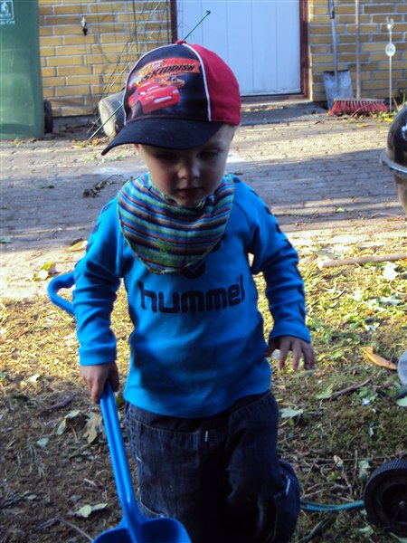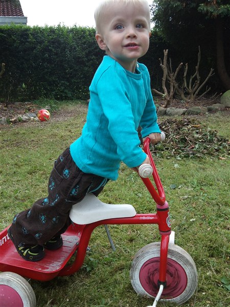 Fik kørt 2 mand på hans lille røde 3 hjulet cykel - vi tipped af den og det gav endnu et grineflip. Har gynget samme på hans nye gynge i kirsebær træet. Revet græsplæne, været i sandkasse, været inde og tegne osv.