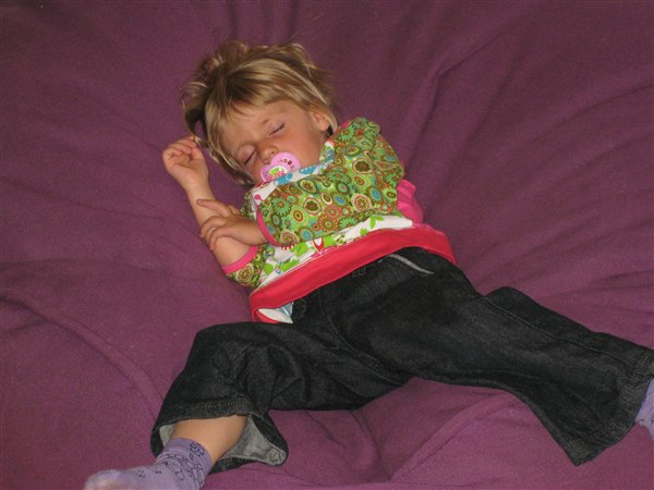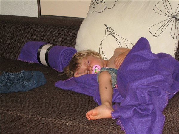 Som I kan se er det hårdt for Annika at starte i børnehave - hun plejer ALDRIG at falde i søvn andre steder end i sin seng...men det er godt nok sket ofte siden hun startede i børnehaven, at hun lige pludselig er faldet i søvn midt i alting, det bette pus