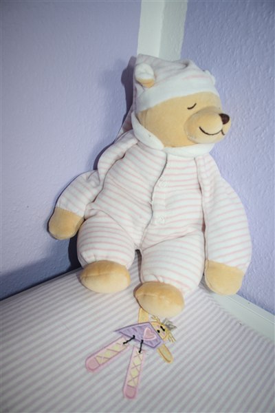 Jeg har gjort Runas seng hyggelig så hun også har noget at kigge på når hun er ved at falde i søvn og når hun vågner...det er så hyggeligt at sidde og lytte til hende når hun "snakker" med sengeranden og bamserne