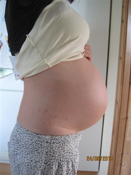 Billedet er fra i dag hvor jeg er 32+4.. (+ strækmærker)
