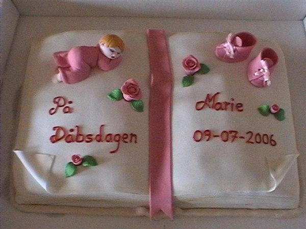 Kan I ikke vise mig, hvad I kan? Jeg står nemlig og skal bestille en kage til barnedåb. Jeg er dog på bar bund, og er meget overrasket over hvor flotte de kan blive. Troede det var en flad kage med det klassiske billede på!! Hvad har I lavet eller fået lavet?