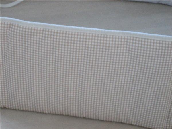 Beige ternet vuggerand sælges, aldrig brugt idet den er købt i forkert størrelse. Omkreds ca. 230 cm.