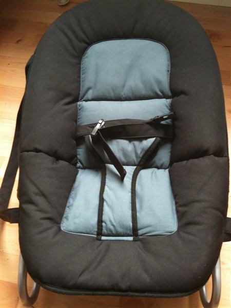 har en skråstol til salg. Den er med gyngefunktion, regulerbar ryg og fodstøtte. Sele til at spænde barnet fast i stolen, samt bærehåndtag. Gyngefunktionen kan låses. Super nem indstilling af ryg og fodstøtte.