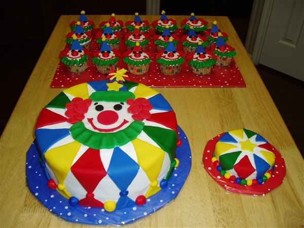 Vi har aftalt chokoladekage med hindbærmousse, en klovn ovenpå, samt skriften "Stella 1 år" + en muffin ved siden af til Stella, hun selv kan "svine" med