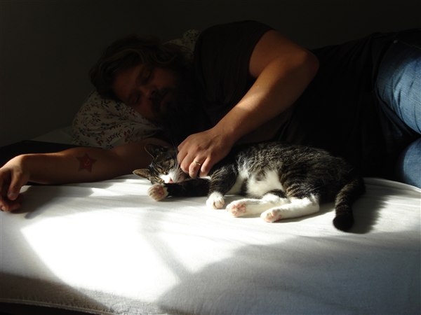 og så får I også lige et billede af Far og August i en solskinstribe en eftermiddag på sengen <3