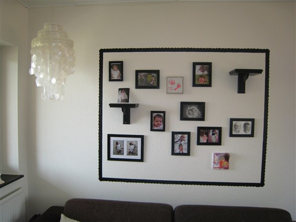 Var blevet træt af det maleri, vi plejer at have til at hænge over sofaen, og ligeså træt af, at vi slet ikke havde nogle billeder af ungerne oppe at hænge - det til sammen gav dette (se billede) - og jeg er bare MEGAtilfreds. Jeg synes, det er blevet SÅ godt, selvom min bettebror mente, jeg havde for meget tid, siden jeg gad give mig i kast med at male sådan en ramme