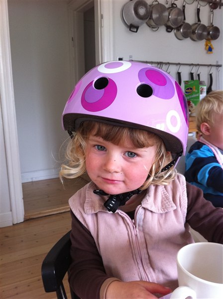 Og så lige et enkelt nyt billede fra middagsmaden idag, hvor den nye cykelhjelm blev afprøvet