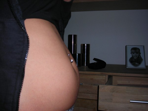Det første billede er jeg 39+4 (en uge før jeg føder)
