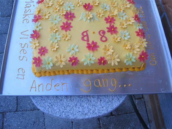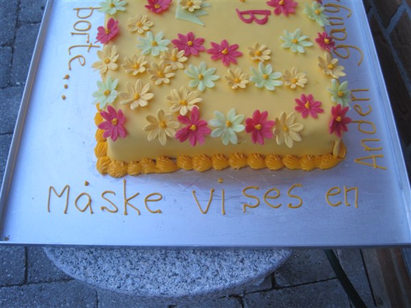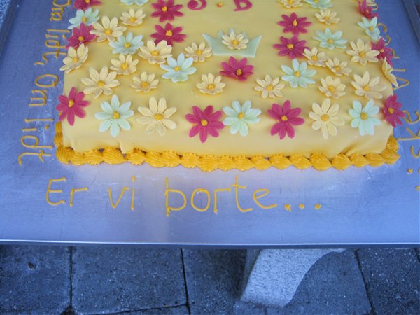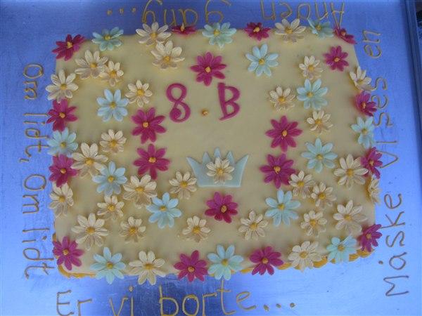 Kage til min klasses afslutning i 8. klasse! Vi skulle sige farvel til tre personer, deraf teksten (Forresten fra min yndlingssang. Kim Larsen har skrevet den - Det er den med cirkusprinsessen)