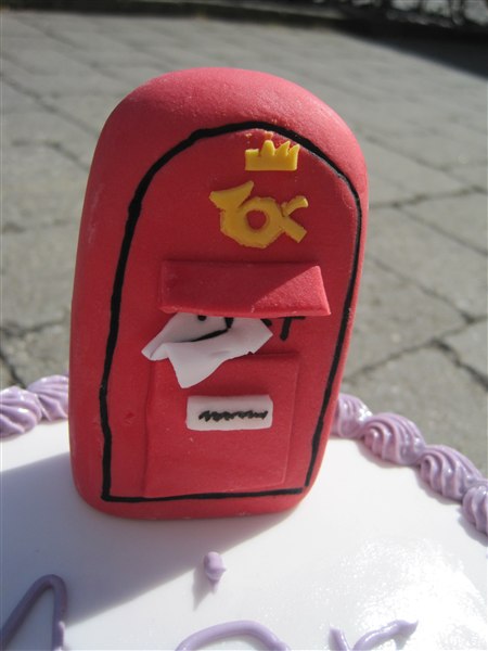 Og lige inden kom jeg desværre tilat smide min lønseddel i den store røde postkasse - uden porto - det var jo ikke nødvendigt, når jeg bare skulle have den med hjem! Så derfor er der er postkasse på