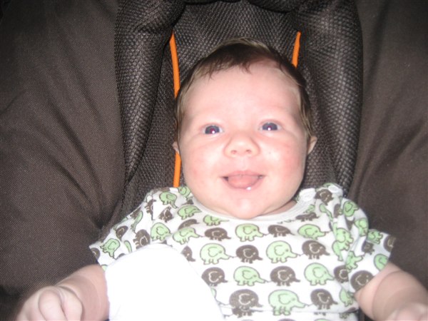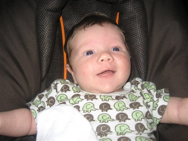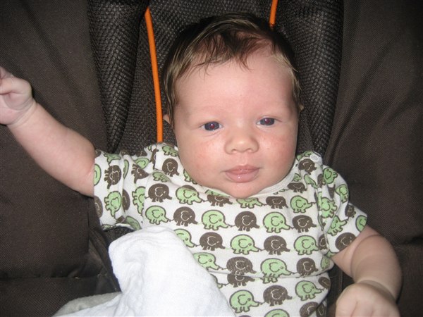 Alexander er idag 5 uger og 2 dage, og han er bare så herlig. Det er bare så skønt at han er begyndt at smile og små grine (uden lyd) Han er dejlig nem, og tilpasser sig. Og der er ikke særlig mange sure miner. Jo kun når maden er lidt for langsom!