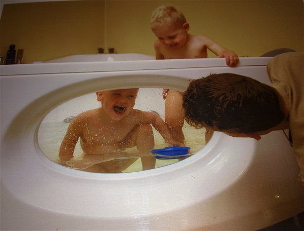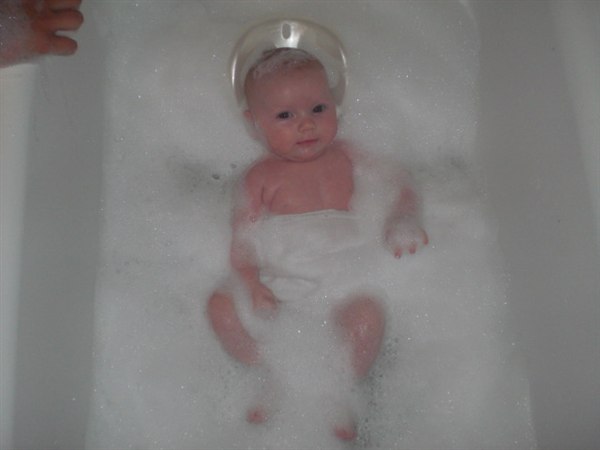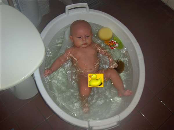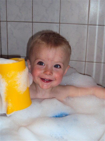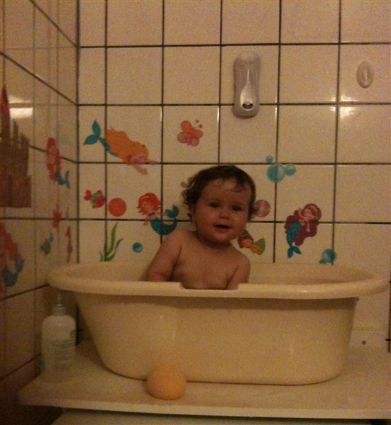 På det sidste billede er vi dog kun på vej i bad, men ville lige dele det med jer alligevel - bemærk venligst "håndtegnet"