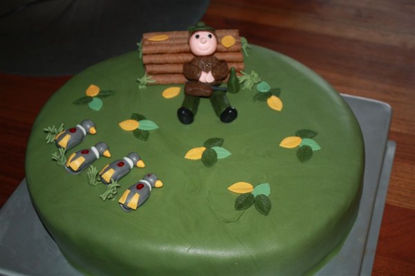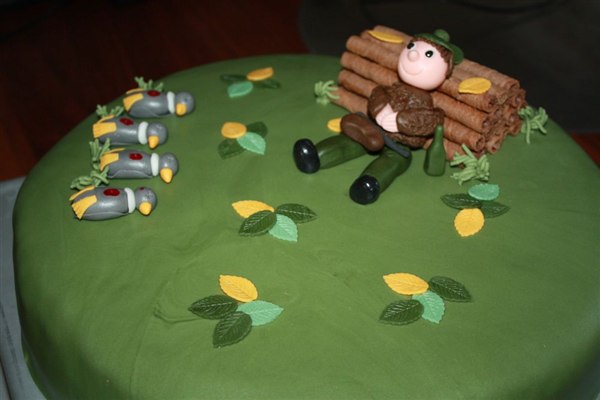 En jagtkage lavet til min venindes svigerfar og Lynet som er til min nevø. Lynet skal stå på en stor kage, som jeg stadig mangler at overtrække, men synes han var blevet så fin at I skulle se ham med det samme