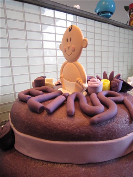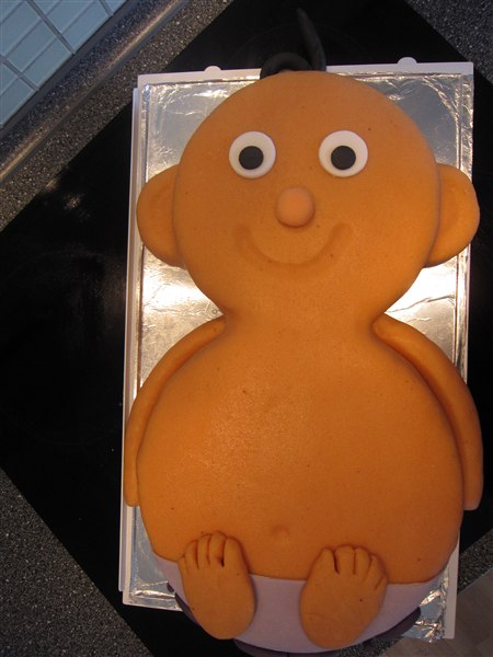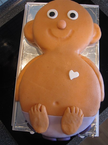 babye's hoved er chokoladekage med limemousse, og kroppen er drømmekage også med limemousse.