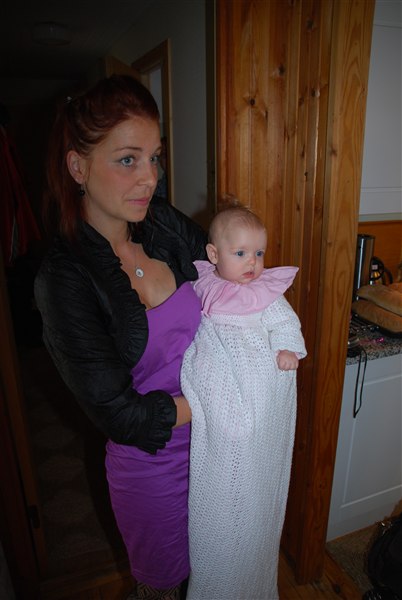 Og så lige et billede af det kære dåbsbarn, sammen med mor.