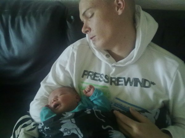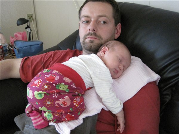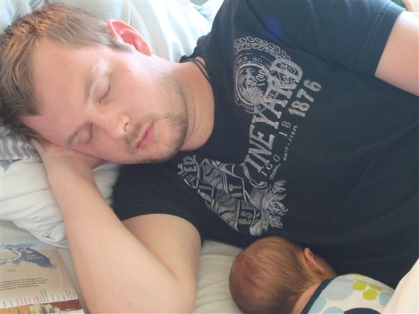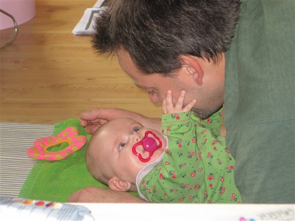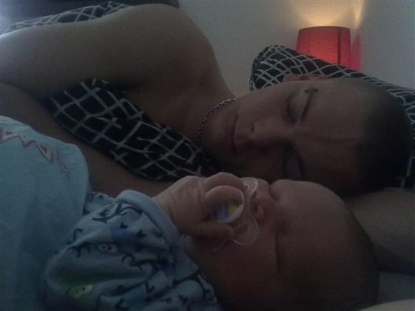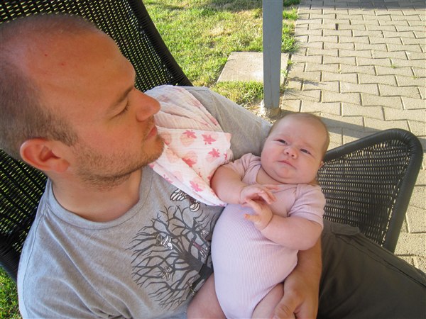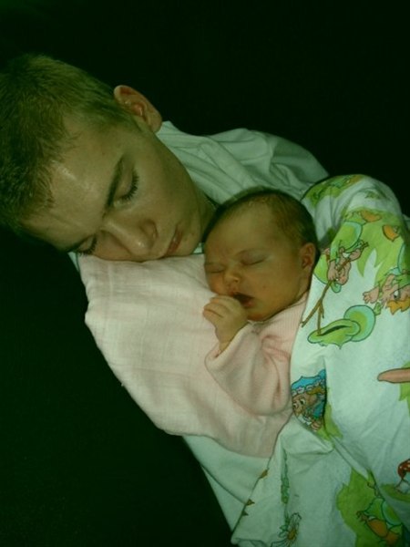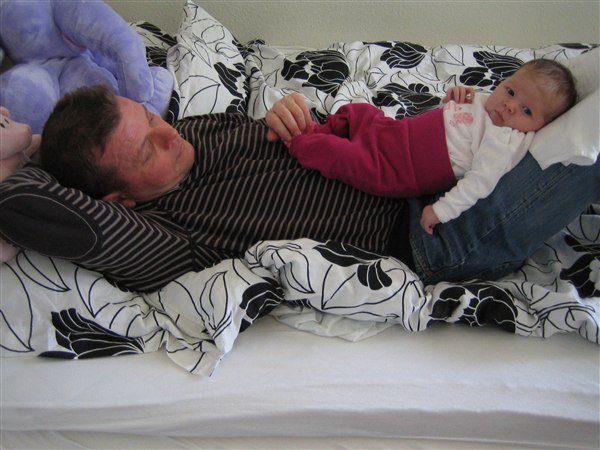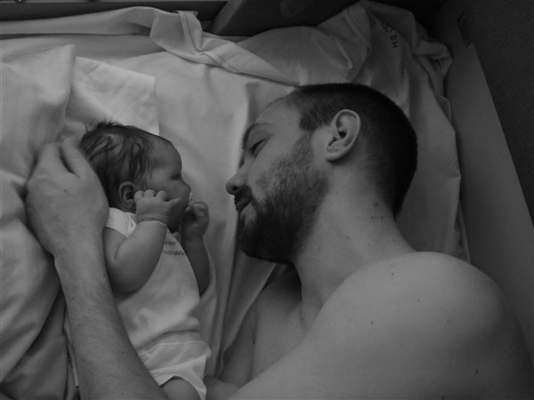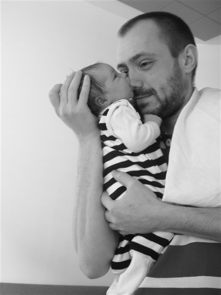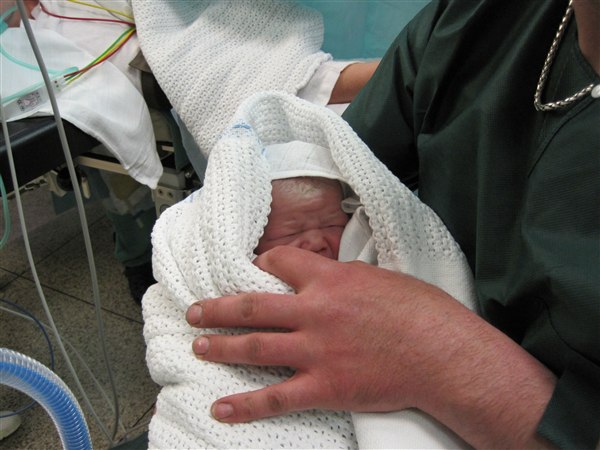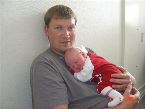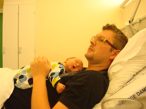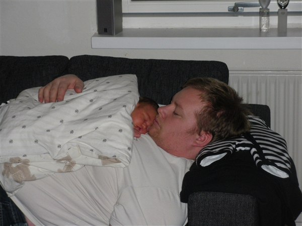 Det første billede er af Mic og Louise ca 2 timer efter hun er født.