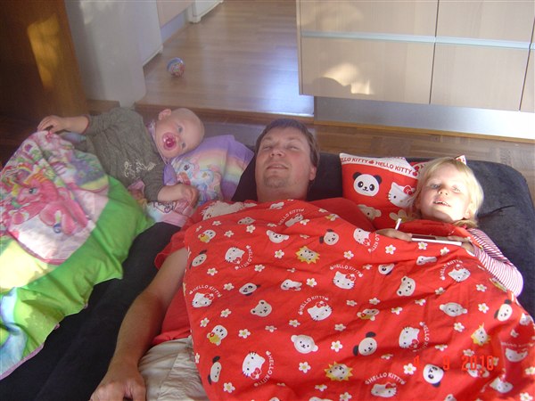 Og det sidste er tage for et par dage siden da de lå og hygge sig på en luftmadress vi sommetider stille op , så der kan familie råhygges inde i stuen