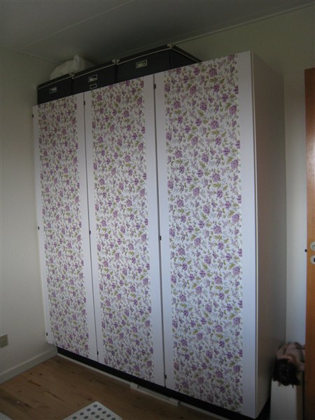TAK! Jamen det er så genialt, at hyldepapir er selvklæbende og blankt i sig selv, så det er bare at klistre det på - ingen forbehandling, ingen efterbehandling, og bliver man træt af det, så hiver man det bare af - og erstatter med noget nyt