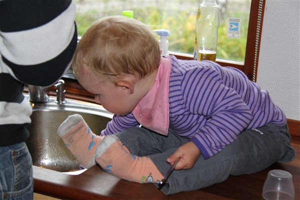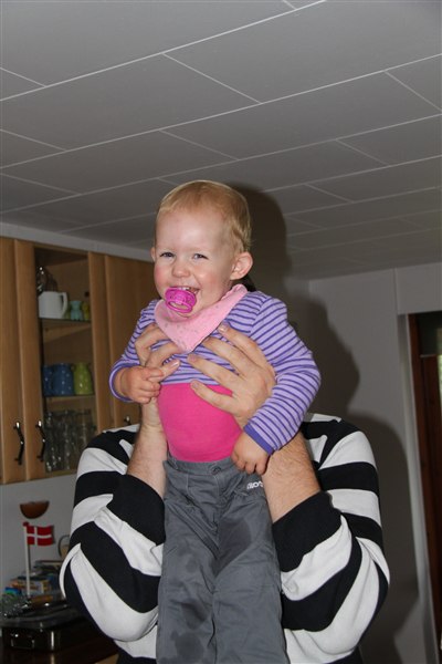 Ellers er Freja ved at være faldet til i vuggestuen. Det er en daglig diskussion at få hende med hjem - heldigvis kan jeg bruge Silja som lokkemad. Jeg tror også en af grundende til at det er gået aå godt er at hun er meget udadvendt og en rigtig charmebøf, så hun har fået viklet alt personalet om sin lillefinger, så hun får tingene som hun vil have det meget langt hen ad vejen. Hun reagerer dog stadig meget om natten - nok både på Silja og vuggestuen. Jeg er nok inde ved hende 5-7 gange hver nat og manden 2-3 gange.