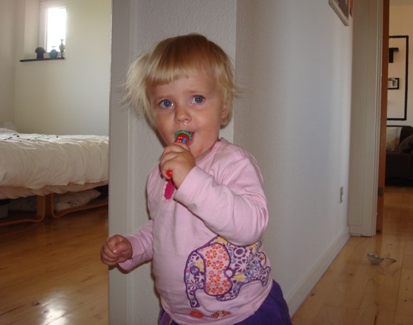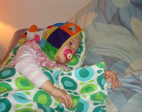 Hysteriet stoppede også med det samme, da hun landede ude i sin autostol. Og sikke en træt pige jeg kom hjem med!