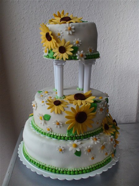 og der i brudebukketen skulle der være solsikkerne og margeritterne er til ære for brudeparets morfædre som ikke er blandt dem længere..