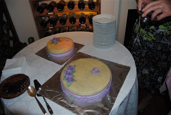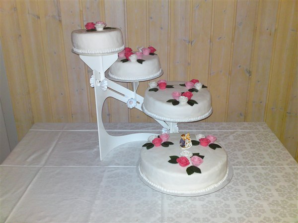 Hun havde bestilt at det skulle være med cupcakes, og vi var så enige om at det skulle være en hel kage øverst som de kunne skære i. De havde selv valgt bryllupsparret på toppen!