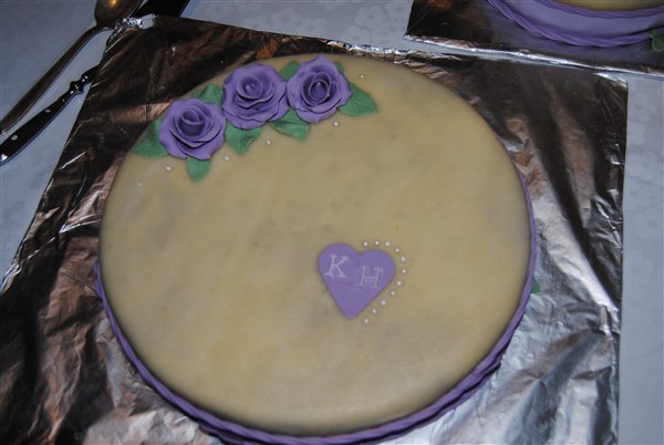 Det er gulerodskage, med cheecefrosting, og så med kandiserede rosenblade til pynt!