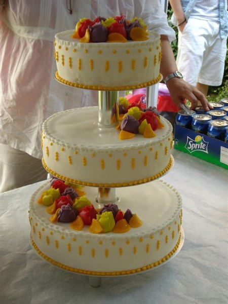 Jeg lavede en cupcake-bryllupskage til en veninde her til sommer!