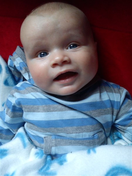 og han er begyndt at grine med lyd på, det er bare slet ikke til at stå for :')