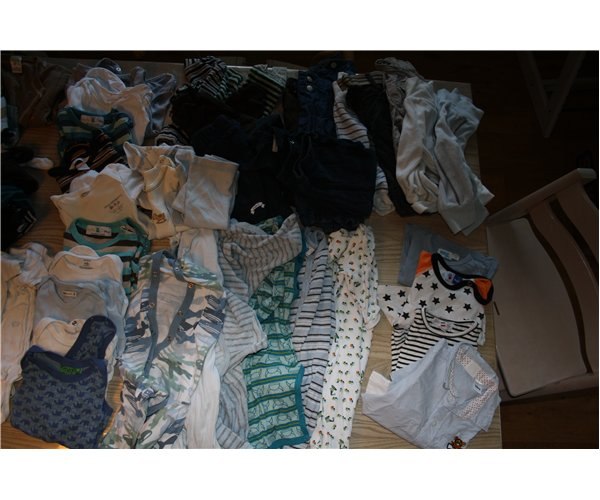 Har en flyttekasse fyldt med tøj, som min yngste er vokset fra. Det er mest str. 62, men der er en lille smule 56 i også. Der er det hele; kort- og langærmede bluser, kort- og langærmede bodys, natdragter, to heldragter, 13 par bukser, 5 par strømpebukser, strømper (også ubrugte), hjelme, huer, en fleecejakke og to varme dragter til udebrug - én str 56 og én i str. 3 mdr. Kan alt sammen afhentes gratis i Hvidovre.